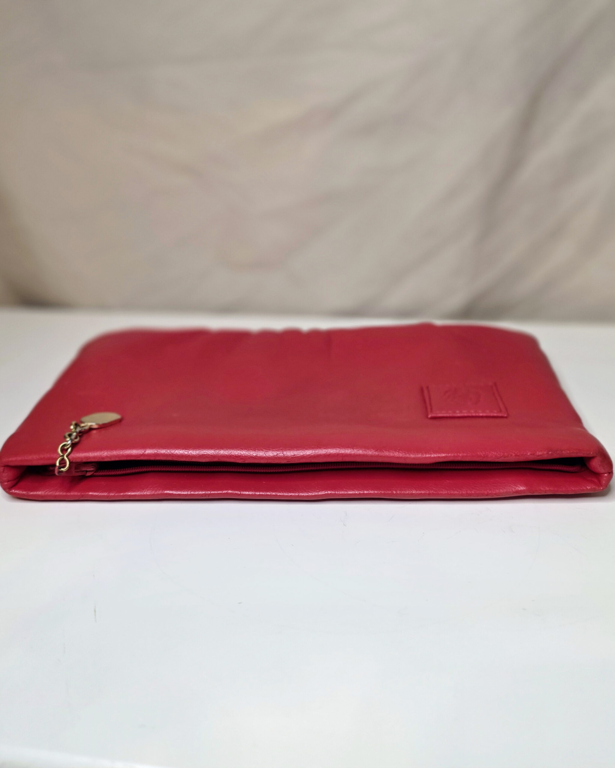 Red Faux Leather Clutch Purse w/Gold Zipper Pull